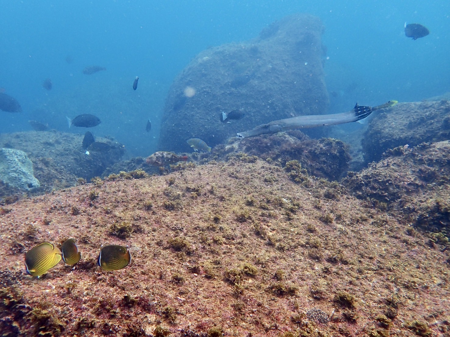 2022年09月11日 カメさんが来たよ。 日本の南に熱低が2つあり、すこーしうねりが入り込んできてます。今日は外海は避け6連ブイと意味のないブイにエントリーしていただきました。高い水温ではありますが透明度はイマイチです。オオモンもビーチ側の生簀に3個体と6連のイソギンチャクに居ついてます。あとは昨日の情報ではサメのヒレでカメさんと遭遇。テンション上がりますね。今日写真はブルーウォーター様からお借りしました。ご利用有難うございました。