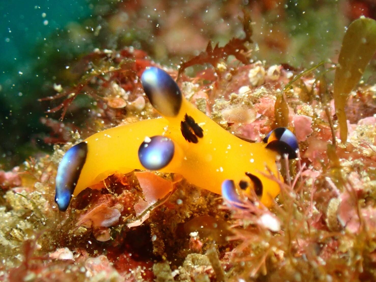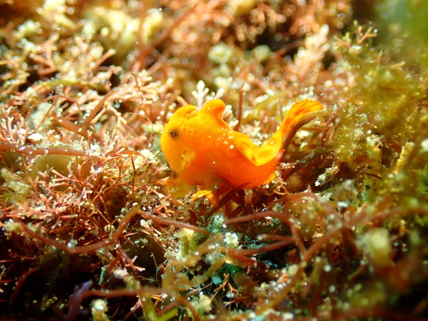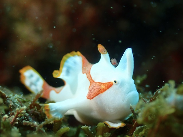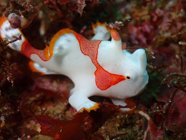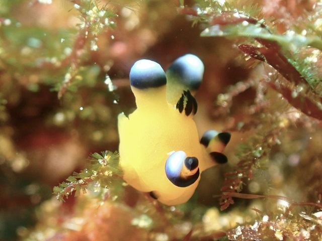 2023年02月26日 可愛いの見付けていただきました。 透明度がパッとしないのでマクロ目線で遊んで頂いたお陰で人間ならまだ目も見えていないのでは?と思うほど小さくて可愛いイロカエルを見付けていただきました。先日網場で見付けていただいたピカチュウは見当たらず新たな個体を意味のないブイの方の生簀の残骸で発見していただきました。クマドリは移動せず黄色のウエイトが目印の岩にいてくれました。水温は17℃。透明度は8mくらいです。今日の写真はご利用頂きましたSHOP様のゲストさんから提供頂きました。有難うございました。